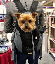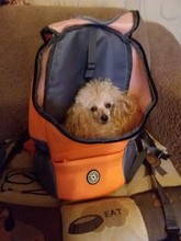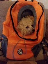 Thanks to the store for the fast delivery, the backpack is good, comfortable, but the size ordered large. the dog is not visible, it does not reach the window, I have that poodle 28 cm on the back and weight 2 kg, a large backpack. quality is good, there is a small smell, backpack and seller recommend. the thing is necessary and convenient.