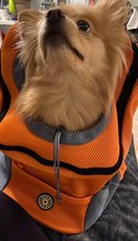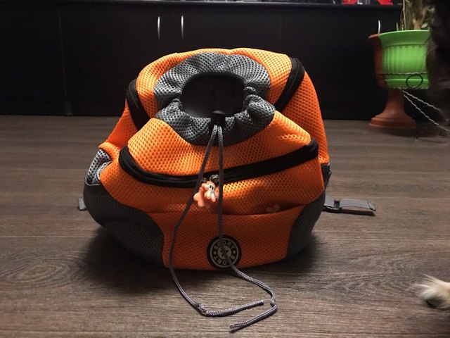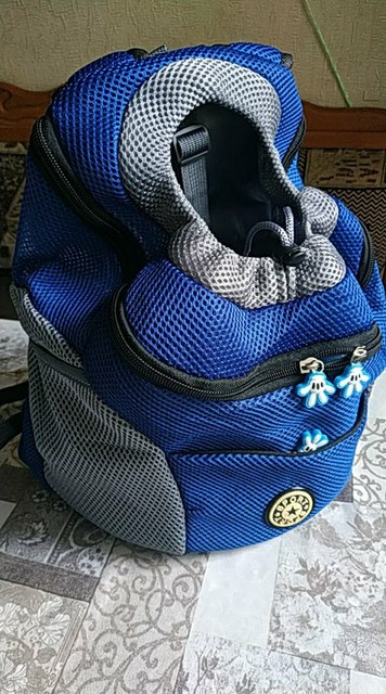 Arrived on time. Backpack cool, material and sewing of excellent quality, there is a light smell of a new thing, will fade quickly. Dog backpack does not scare off and even like it. Very conveniently adjustable straps and attached to the body for any size of the carrier, though on a small aunt, though on a thick high uncle. Papilona 7 months (3.2 kg) size is a little big, on the rise to the summer, ride together on a scooter, will be excellent.
