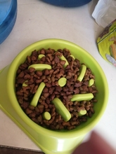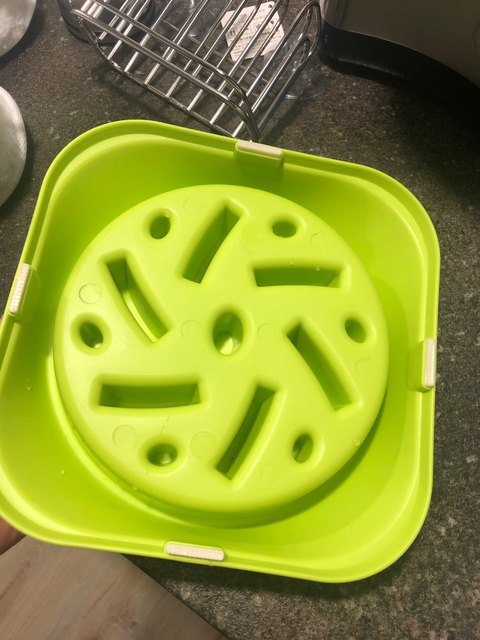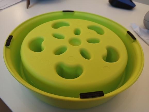 Very cool bowl. My corgi ate very quickly, now he has food and puzzle. We are happy!