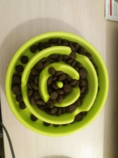 Bowl satisfied. The dog really began to eat food more slowly than from the usual bowl. Earlier everything flew away at the moment, now minutes in 3.