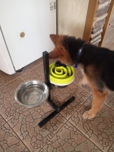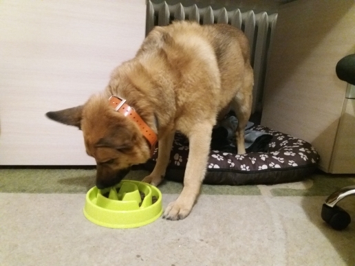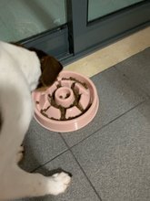 Excellent bowl, good, strong material, on the floor is stable, dog with interest eats out of it, good intelligent fun for pet