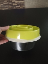 The bowl came for a month, unrealistically large in diameter 20 cm, not less