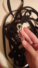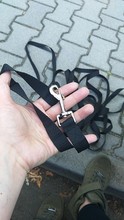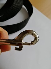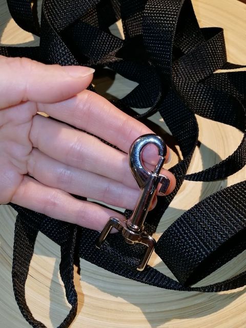 Delivery to Moscow two and a half months. The leash is good, but it was necessary to take less than 10 meters all the same a lot. Very much slips in the hand, have to wear a glove. Bought for two beagles. On the other hand, another carbine was sewn. Получился double sided. On a large dog, it’s better to take more.