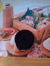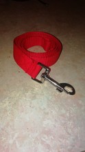 The leash is not bad for its price. Width 2 cm. I waited a very long time, 2,5 months. Carabiner large dogs will not go, a maximum of 12 kg and not very pulling