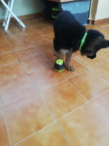 The dog loves her just to drive and without food on the floor. The food has ceased to be poured there, as we were told that such toys support the dog to pick up everything from the floor. It seemed logical to me