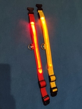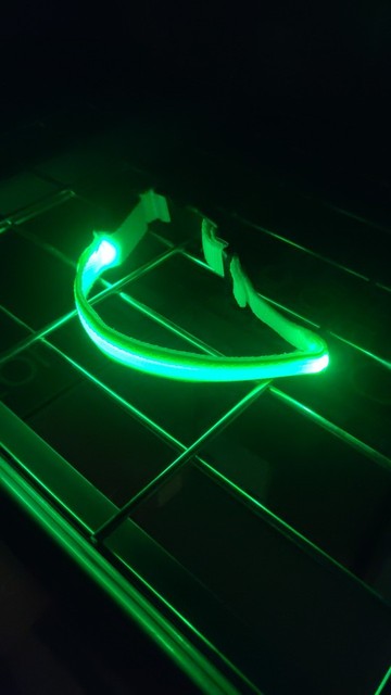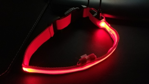 Collars are cool. I use from as Additional at night. The collars themselves are flimsy, if you cling to them a leash. I use a helmet at the same time. Have 3 different glow mode, included wire for charging. The block of sled diodes itself is removed from the collar, so the fabric part can be washed. But the lighting unit is not sealed, I would not advise using them in wet weather.