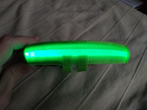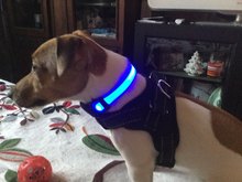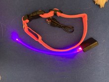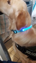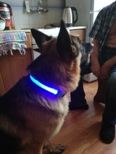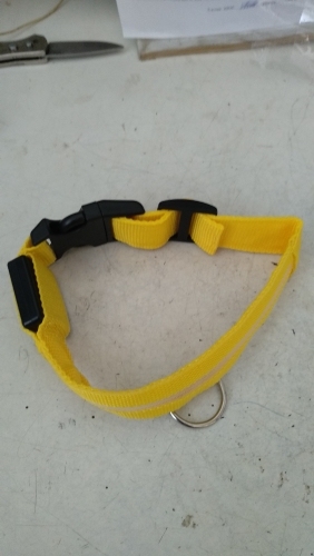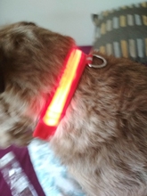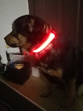 Good necklace very bright good autonomy in battery version. On the other hand if you have a dog that walks you through your path. I took a size L for my male malinois and c perfect. On the other hand long delivery