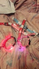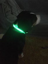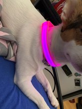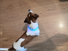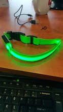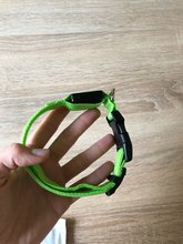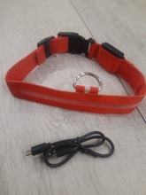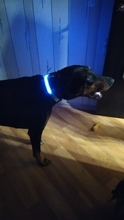 Collar very much. Took a connector for charging, very convenient, do not need to spend money on batteries)) there are three modes of flashing, size have stock. I have a puppy. We will use with pleasure. Thank you very much!