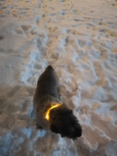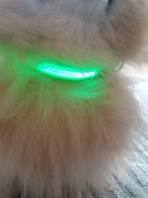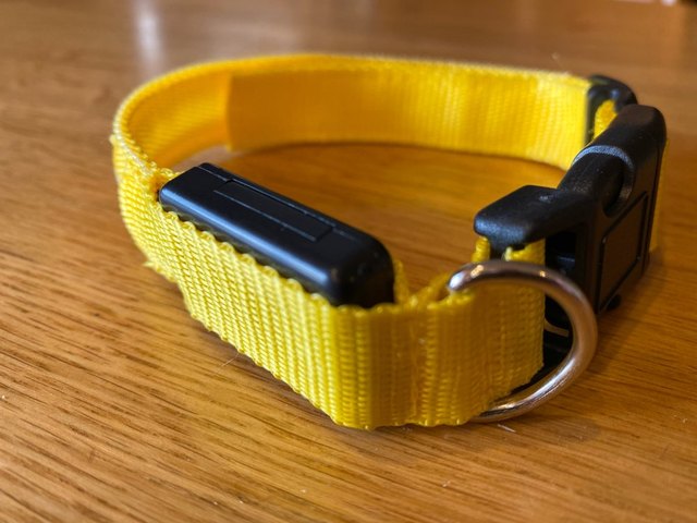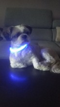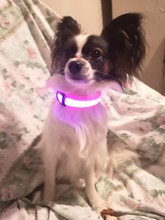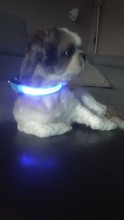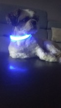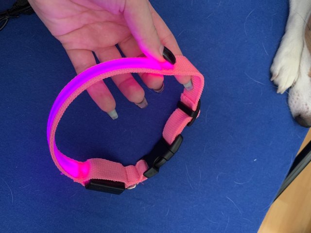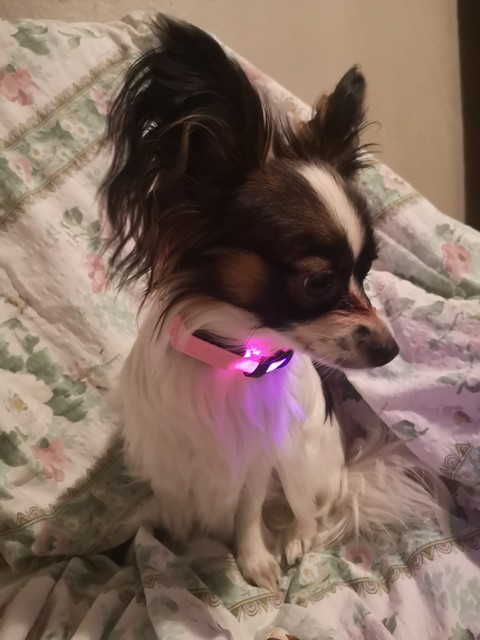 Very cool dog collar. Little dog is visible although that has long hair. Only not clear how much time loading the, because no lights charge. Besides it is super. I I use as collar notes. Recommend. Thank you stores.