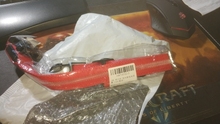 Packaging thin oilcloth broke on the road. In the hole was seen the goods