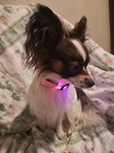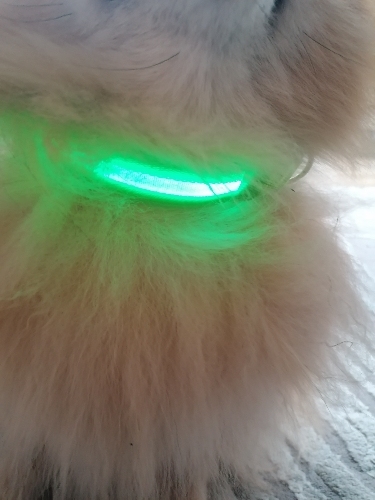 Well, what do you say…? Collar even XS size for a small dog, too big. Took for Japanese hina (3,5 kg., 2 years). Wrapped twice!! Need to ask the store, can I cut? Luminous tape only up to half the size. Glows well, bright! In the collar is inserted a transparent, silicone tape with LED on the end. Three modes: continuous and flashing fast and not fast… 🙂 On two batteries sr2016. Very large, “massive” accessories, which are black. It turns out on a small dog, half is on, half is not. Adapted-when on the leash, the luminous part on the chest (turn off), because the loop for the leash on top. When removed from the leash, the collar is turned by the accessories down and light up. 🙂 We think to increase the size, so that the collar does not fall under the wool .. Slightly less head. Made qualitatively! In general, I recommend …. It’s better than “hang” on the collar.