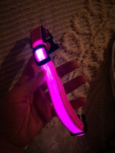 Collar just like in the picture. Glows in the dark very well, that already the ground shines. The store sent quickly, in communication was polite.