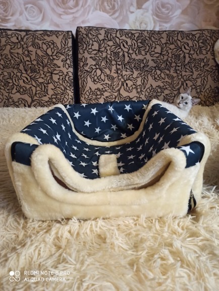 Such as in the picture. For a small cat will do. Threads protruded in places. On the inside, one seam broke, you can see in the photo. Delivery is long, it was almost two months.