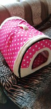 The house is great. For dachshund even with a margin, very spacious, so, I think, will fit a bigger dog. The dog was caught immediately. At first glance, everything is very good, if there are any complaints, then I will definitely add a tip.