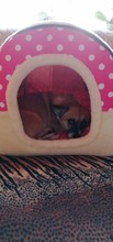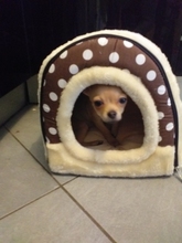 The house really liked, my Chihuahua liked, he sleeps in it. I took it, it was 2 months old, it was big for him, but it will grow just will