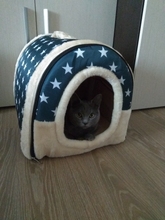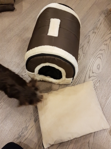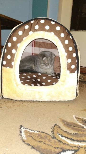 My cat is very fastidious. I was afraid she wouldn’t sleep there because I bought the beds before and she avoided them. And this house fell in love, from the second day)) The main thing is not to impose a cat house. Put somewhere and wait for her to be interested)