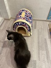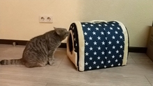 The house is perfect. There are no specific smells, which I am glad. I ordered the size M, the cat space is enough, just right. Immediately began to study a new object of attention and climbed inside. 22 days to the Irkutsk region. In general, the product is satisfied with five stars