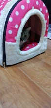 Excellent House, the cat immediately dived into it. The size is even too big, although I do not have small kittens. Thank you very much to the store.