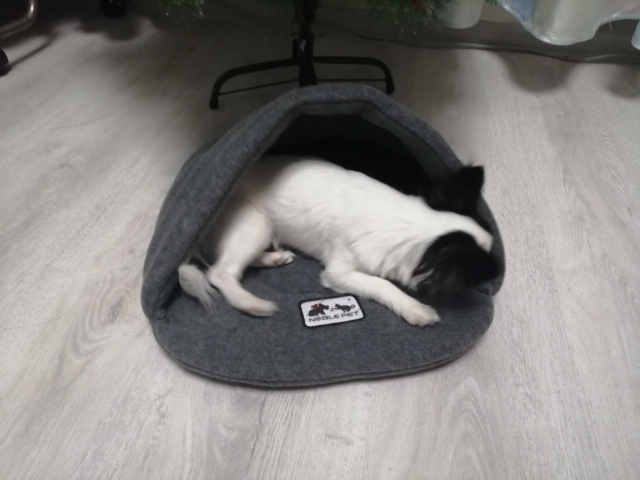 The puppy immediately determined that this House is intended for him, climbed inside and sat down. Now he sits there always when he wants to bury the back, for example when we come back from a winter walk. He’s very comfortable there. And sleeps of course, too. Buy more!