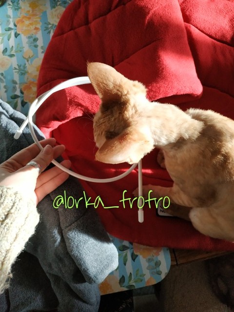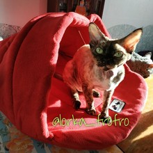 The cat immediately liked it, the Cornish Rex size M perfectly approached.