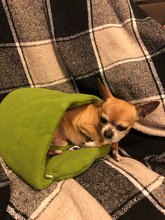 Delivery slightly less than a month to the Post Office. The size for the Chihuahua puppy is normal, but you do not get very upset, it is better to take a little more. The dog liked it, she played it a little, sniffed and tried it on the tooth. Whether it will sleep in it, I do not know. Thank you to the store. I recommend.